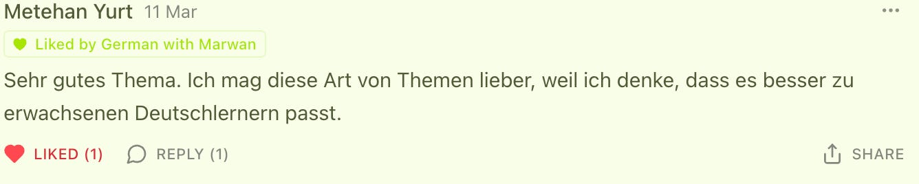 If you ever want to share your journey with German, ask about a specific topic, or suggest phrases or situations you’d like me to cover - feel free to reach out.